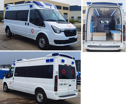 该车主要配备医疗器械柜,氧气瓶,担架等专用装置,用于救护或运送伤、病人员;随原车选装机 械踏板或电动踏板,前大灯,前脸造型,选装号牌板支架,车门两侧不带英文装饰条,车身同色后视 镜,车身同色门把手及钥匙孔,选装中顶;选装标志灯样式及位置;选装整车内部布局,选装整车外 观;ABS系统控制器型号: 6C11 2M110 A*或CC11 2C405 A*或EV7021,生产厂家:博世汽车部 件(苏州)有限公司;该车选装ETC. |